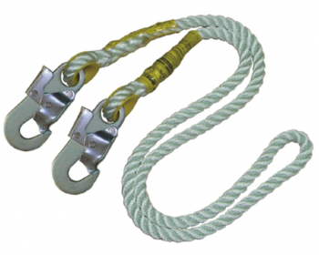 Cabo de vida (estrobo), simple de longitud fija. Fabricado en Cuerda (03 Hebras) Torcida 12 mm. con mosquetón (Simple) doble cierre de seguridad en ambos extremos. Máxima longitud de la unidad: 1,80 m.